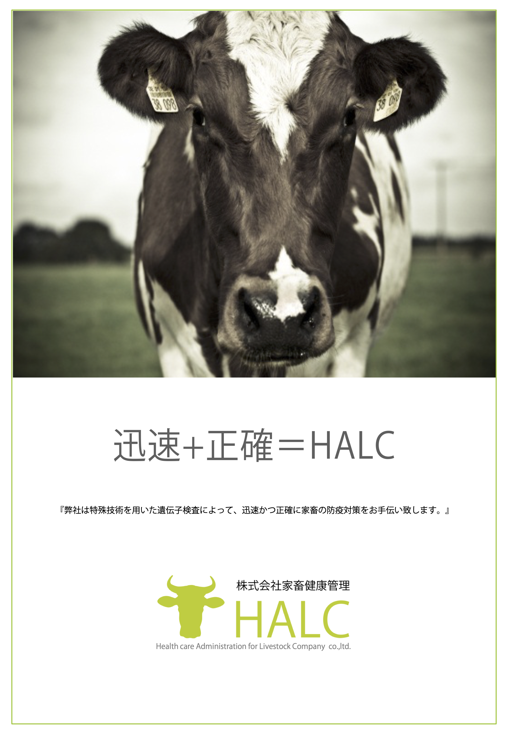 株式会社家畜健康管理(HALC)は2012年に設立した会社でございます。弊社は、経営理念の基、社会全体へ貢献できる企業を目指しております。現場のニーズを的確に捉えて付加価値の高いサービスの提供に努め常に酪農現場の皆さまから信頼いただける企業作りに励んでまいる所存です。何卒、皆様よりご指導、ご鞭撻賜りますよう、よろしくお願い申し上げます。